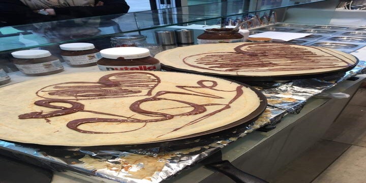 Besonders ist, dass der Crepe als Eistüte gefertigt wird. Optisch sehr ansprechend.